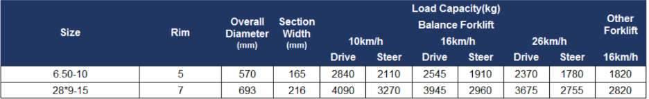 Size: 6.50-10 Solid tire, 28x9-15 solid tire