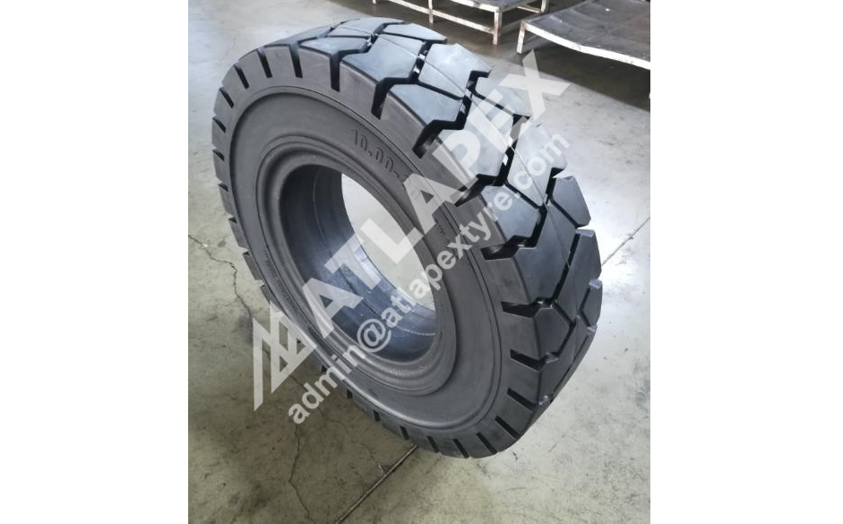 ATLAPEX Solid tire 10.00-20 CONTIRUN for Port terminal trailer and industry trailer has been approved in domestic market, the tire has been used 100,000 hours without problem. It's predicted to last about 20,000 kilometers and more.