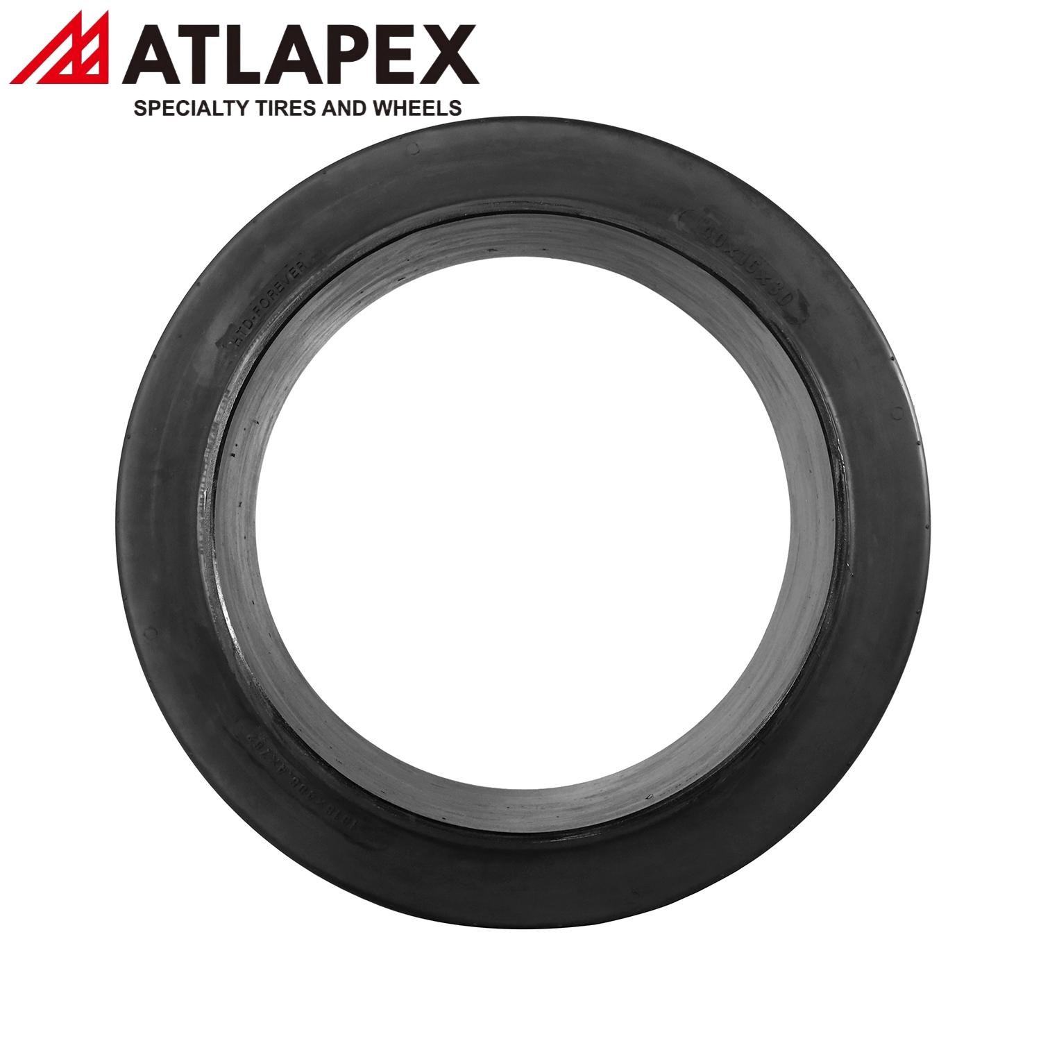 l Three-Layer Specialized Construction: All ATLAPEX solid tires, including the PNSM Pattern, feature a precision three-layer structure (tread, cushion, base), each with a unique rubber compound. This design optimizes wear resistance, shock absorption, and load capacity—critical for aviation ground equipment operating in high-stakes environments.