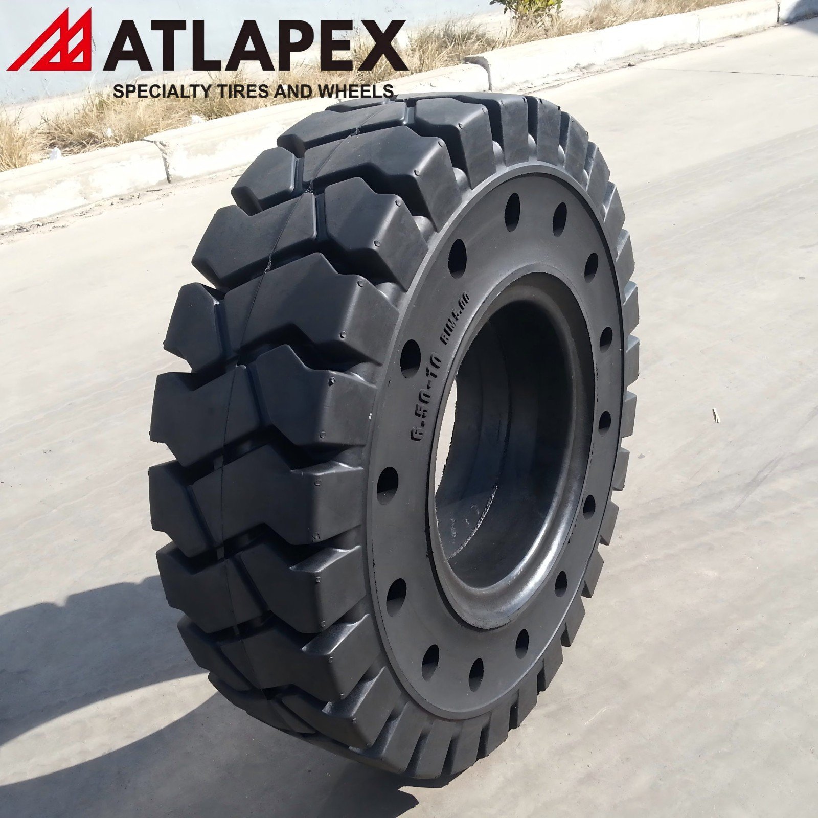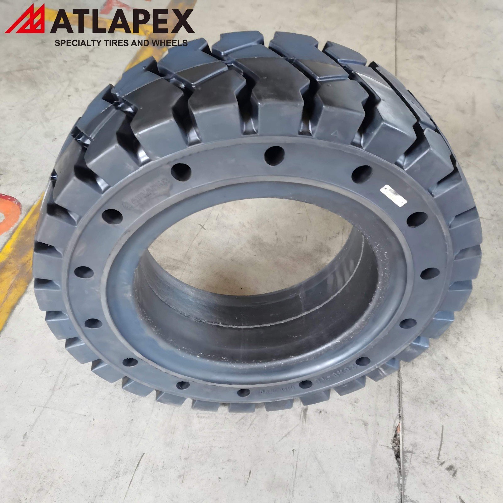 l Strategic Hole Design for Optimal Forklift Performance: The integrated hole design sets this tire apart for forklift use, combining the puncture-proof benefits of solid tires with the comfort of pneumatic tires. The holes facilitate efficient heat dissipation, further reducing internal heat buildup during long-hour operations, while enhancing flexibility and shock absorption. This design ensures a smoother ride, reduces operator fatigue, and extends tire life—perfect for forklifts that operate continuously in high-demand environments.
