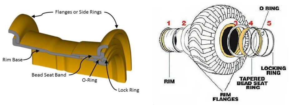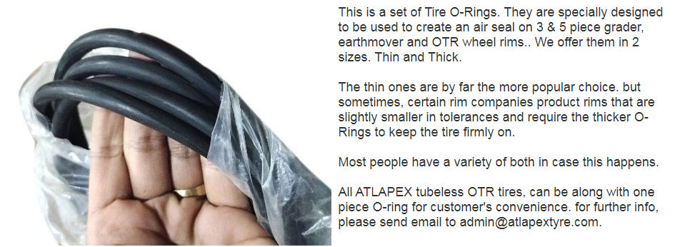 OTR tire O-Rings are located in a groove between the rim & bead seat ring to create an air seal on 3 & 5 piece grader, earthmover and OTR wheel rims.