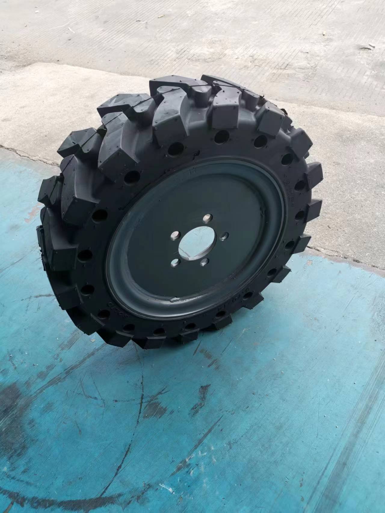 One of the key advantages of solid skid steer tires is their puncture-proof construction. Unlike traditional pneumatic tires, solid tires are made from solid rubber, eliminating the risk of punctures or flats. This feature is particularly beneficial when working in construction sites or areas with sharp debris, as it reduces downtime and increases productivity.